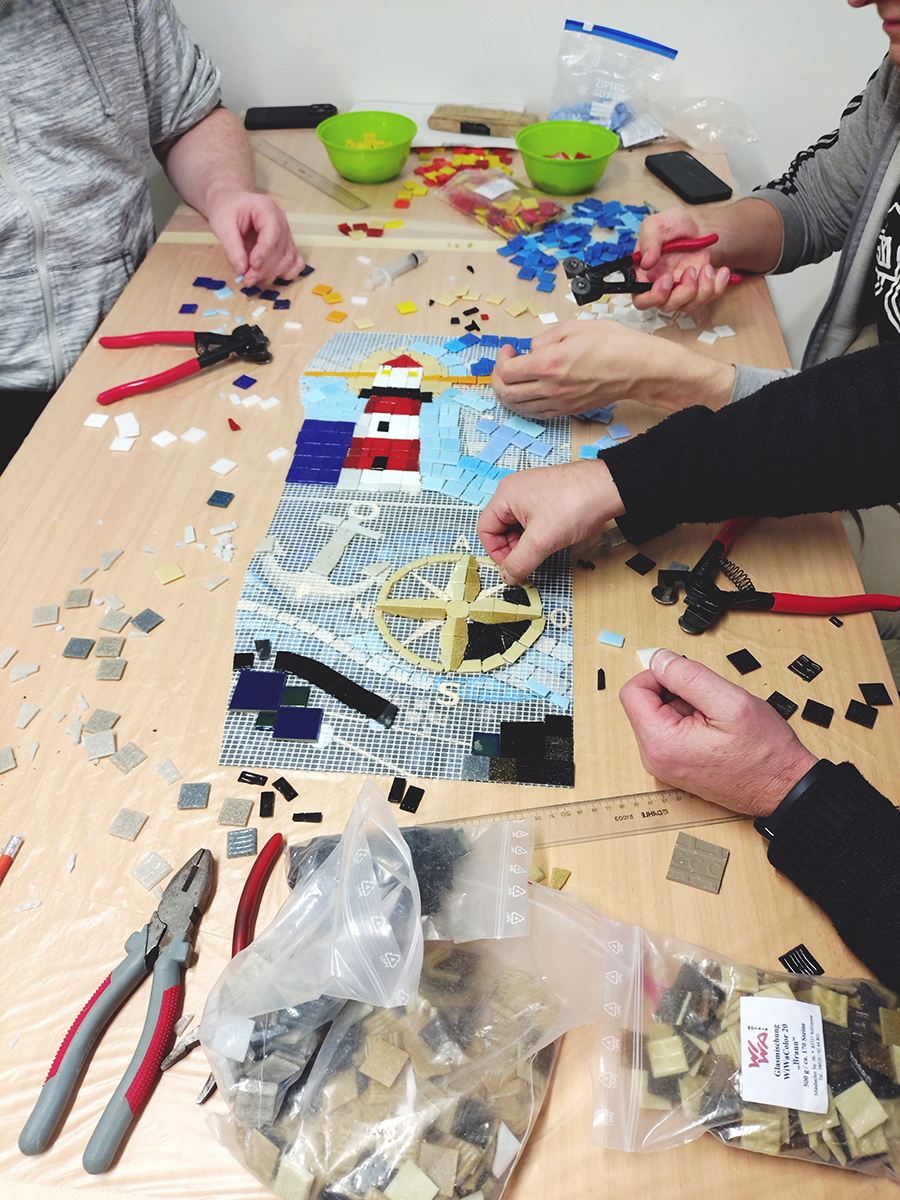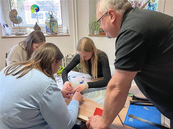 Teamevent als Weihnachtsfeier: Ein kleines Team von fünf Mitarbeiterinnen gestalteten kleine Mosaiklaternen. Mit viel bunten Glas erarbeiteten die Kolleginnen ihr eigenes kleines Kunstwerk für zuhause. Glas brechen, aufkleben, verfugen und säubern stand auf dem Vier-Stunden-Programm. Ein "leuchtend" schöne Idee für die dunkle Jaherszeit.